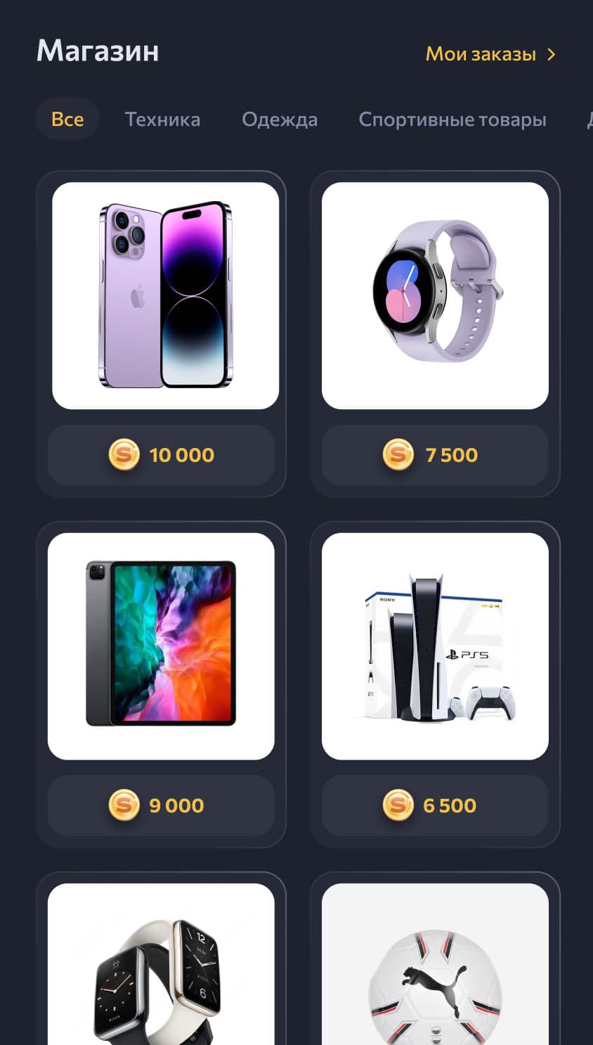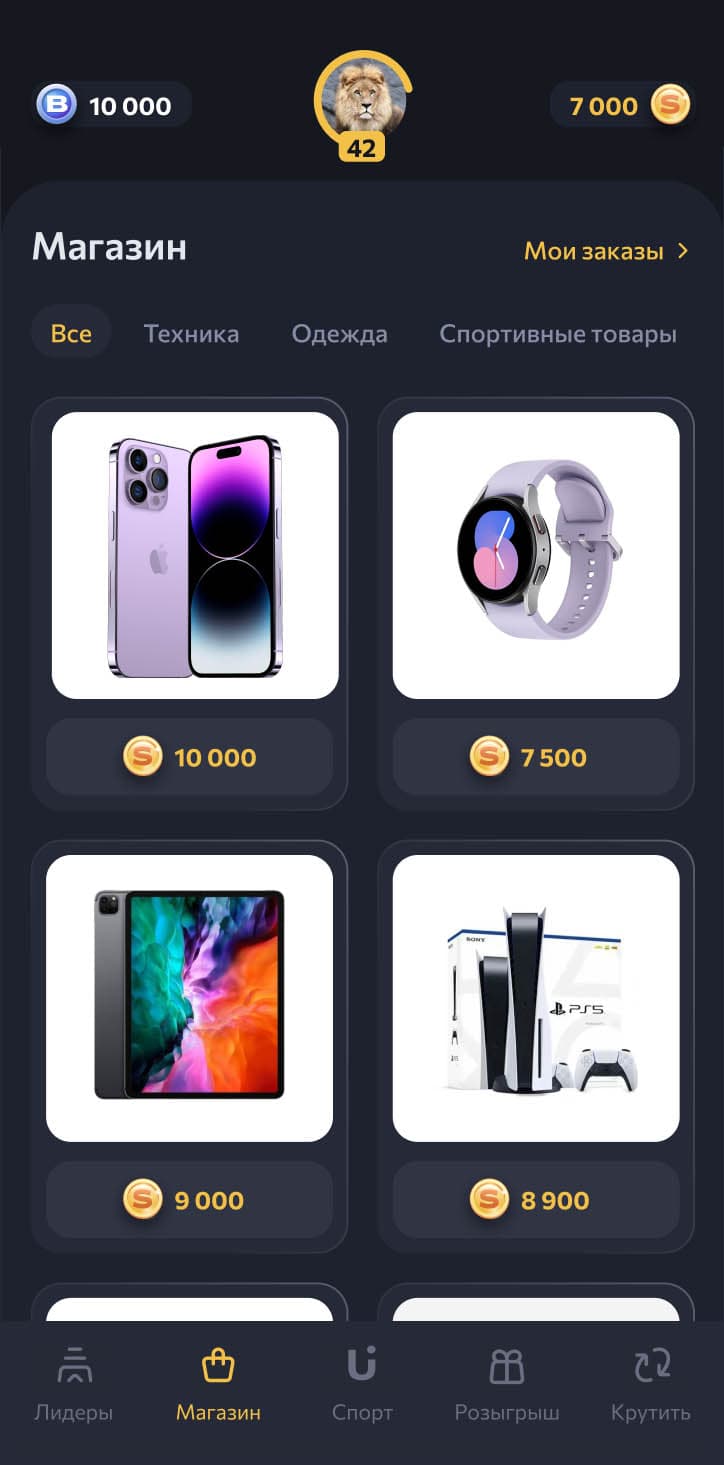 Обменивай выигранные монеты на реальные товары.